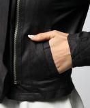 比翼のZIPフロントが、辛口なムードを後押し。