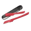 先端のステンレス素材は、お肌を傷付けにくいようデザインされたものであり、眉やお顔周りの繊細な部分に使用するために開発されました。