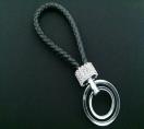 編み込みダブルリングキーホルダー(ブラック)