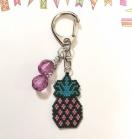 こちら、デリカビーズを1粒ずつ針と糸で編んだ〓ハンドメイドのキーホルダー〓です〓。パイナップル〓の形でカラーを敢えてレトロなピンク&ターコイズにしてみました〓。