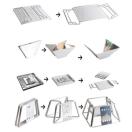 大きさは畳んだ時は縦約20cm 横約20cm 厚み6cmになり収納バッグに収まります。使用時は縦横約17.5cmの正方形に広がります。高さは最大16.5cmで3段階調整が出来ます