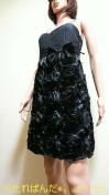 [商品情報] 胸元リボン下いっぱいに広がるお花モチーフがとても綺麗なワンピドレスです。シャカA素材で軽やかです。 ブランド:DECO PASSIQUE 色:光沢黒 サイズ:F 平置き⇒胸元幅36cm〜、脇下からの着丈71cm、ウエスト32cm、裾幅66cm 素材:ポリエステル ストレッチ:なし 幅広背シャーリングゴム:あり ファスナー:なし パット:なし 裏生地:あり 他:新品タグ付きです。