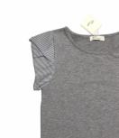 袖は細かいボーダーの薄いポリエステル素材で、2枚が重なったフワっとしたデザインです〓。
