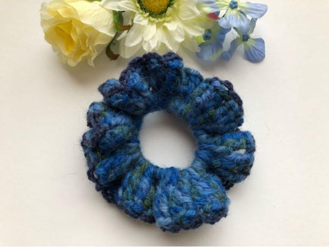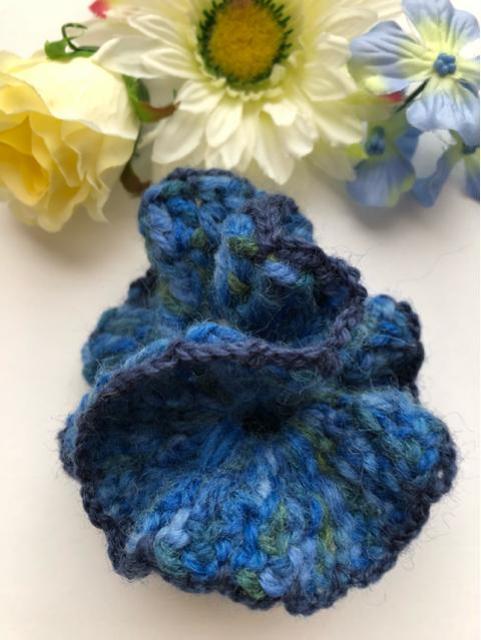 ウール100%の毛糸でフリフリシュシュを編みました。