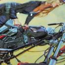バイクや女性がエンボス加工されている、かっこいいデザインです。
