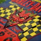 エンボス加工されてレッドデビルの顔が浮き上がっている、かっこいいデザインです。