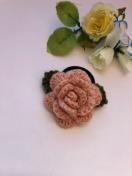 ウール100%の毛糸で薔薇を編んで、ヘアゴムを作りました。