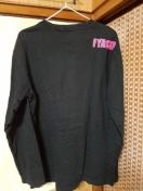 黒地のロンTで、ショッキングピンクのブランドロゴプリントが、胸&後ろ肩にあるシンプルなロンTです。
