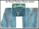 90代のオリジナルパンターズエアブラッシュデニムジャケットです。b系・ヒプホッパの時代に人気のファションスタイルです。フロントに格サイドにポケットがあります。後ろにパンターズのエアブラッシュされています。袖の横にもあります。ジャケット全体にもシクエンスがついています。
