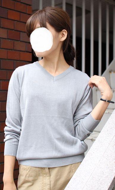 Vネックだから、フェイスラインもスッキリ見えて小顔効果あり。