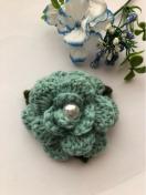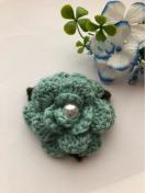 ウール100%の毛糸で大きめ薔薇を編んで、ストールピンを作りました。