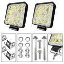 LEDパワー:48W LED数:超高輝度3W型LED × 16連) ボルト:DC 10〜30V (12V-24V) 電流:12V/1.7A、24V/1.1A 照射角: 広角タイプ(60度) 使用温度:-40℃〜85℃ LED発光色:ホワイト 色温度:6000 K 防水等級:IP67 ルーメン:4320LM 本体素材:アルミ合金 サイズ:12 x 4 x10.5 cm (L x W x H) セット内容: ・ランプ2個 ・ステー&ネジ×2式締切日時