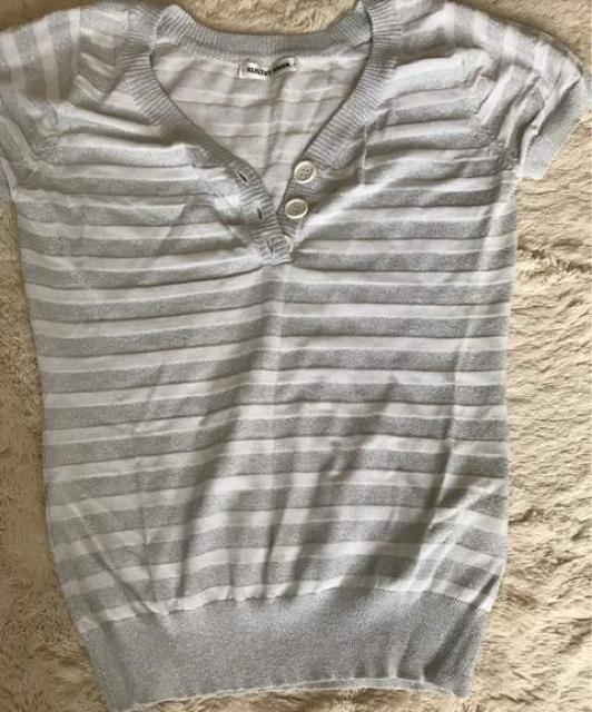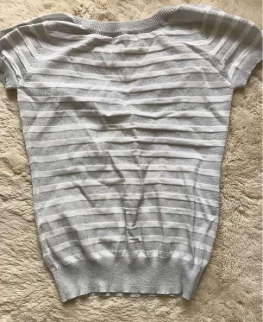 シルバーラメ入りのストライプの可愛い半袖トップスになります。