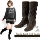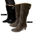 コーディネートがしやすいスエードのバックベルトボアロングブーツ