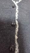 全体色は合わせやすい素敵なグレ-〜回りのクラシカルなレ-スが可憐〜レ-スは後ろ首回りまであり、さりげなく豪華〜お嬢様風な雰囲気があり魅力的〜Vラインがお洒落〜ミニボタンお洒落〜七分丈が可愛いくて珍しカ-デ〜OLIVEの中では希少なデザインですね(*^^*)