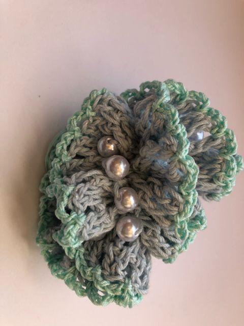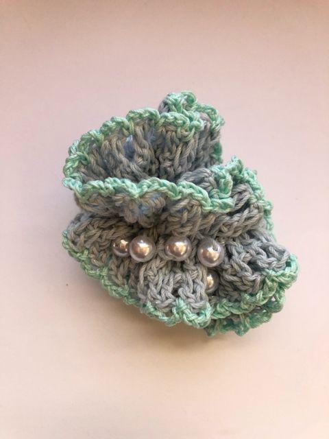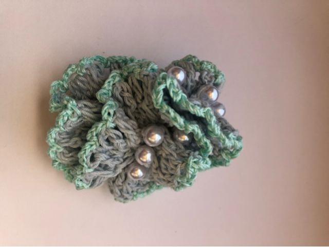 ラメ入りコットン糸でボリュームシュシュを編みました。