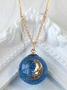 レジン ハンドメイド ネックレス 球体 宇宙 青 月 星