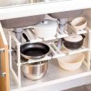 多機能収納棚:幅と二段高さ調節機能、シンク下の空きスペースを有効活用できる。