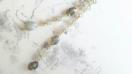 グレーでまとめたワントーンのピアスですが、揺れるとブルーのシラーが現れます。