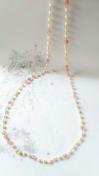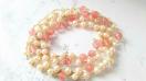 淡いオレンジの淡水パールにチェリークォーツをあわせて春らしい色合いにしました。
