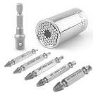 ユニバーサルアダプター(ドリルアダプター付き)2点セット+スクリューエキストラクター(折れたボルト/ネジ外し)5本セット(収納ケース付き)=超お得&実用性高い修理工具7点セットです!!