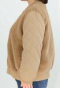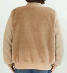 ボアとキルトのふんわりあたたかな組み合わせ。異素材で切り替えたブルゾン。優しくあたたかな見た目と着心地、着ぶくれしにくいシルエットにこだわったそうです。袖口や裾は風を通しにくいリブ仕様。ゴールドのファスナーがアクセント。