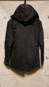 裏地はボア仕様で防寒性の高い造りになっていて袖口や前の縁〜フード周りにレザーを使用。