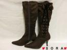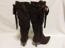 リボン付きサイドがスピンドル編み上げのスエードロングブーツ