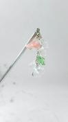 涼やかで可愛らしいお花のビーズにうるうるの雫ビーズをたっぷり留めつけました。