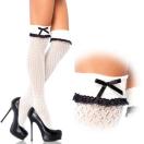 クロケットレース素材のラブリーなニーハイ丈で、リボンとラッフルトリムがアクセントになっています。