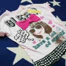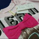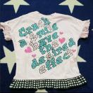 ☆ポップなロゴにはラインストーンがキラキラハート部分にはラメがキラキラサングラスをかけたガールプリントには大きな立体リボンが付いていてインパクトがあります。