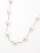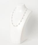 シンプルなパール調のモチーフと独特な質感のあるスネークチェーンを組み合わせたネックレス。