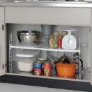高さや幅は簡単に変えられ、背の高い鍋なども収納できる。締切日時