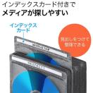 不織布にはディスクを出し入れしやすい切れ込みと、飛び出しを防ぐサイドストッパーが付いています。検索に便利なインデックスカード付きです。