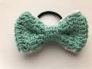パステルカラーのコットンミックス糸でリボンを編んでヘアゴムを作りました。