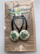 コットン生地でくるみボタンのヘアゴムを作りました。