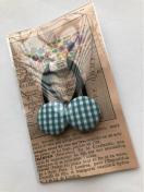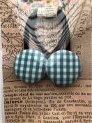 グリーンチェックの生地でくるみボタンのヘアゴムを作りました。