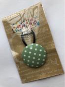 人気のドット生地でくるみボタンのヘアゴムを作りました。