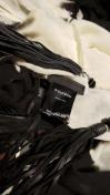 レザーフリンジもありレーヨン素材で肌触りも良く大変存在感あるストールです。