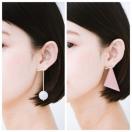 メタリックなトライアングルパーツが目をひくピアスは、パーツそれぞれがセパレートにもなるので、4通りの使い方が出来る優秀アイテム