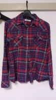 左側のみオフショルダーになっている、アシンメトリーのチェックシャツ。袖がシャーリングで、後ろが少し長め、ちょっぴりセクシーなシャツ。締切日時