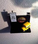 アンティークな雰囲気のバスとバスストップのモチーフで