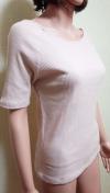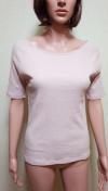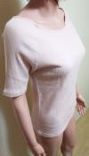 [商品情報] ボートネック&リブ編みですっきりシルエットのカットソーです。 ブランド:shelney 色:ピンク系 サイズ:L 平置き⇒肩はラグラン、胸元幅41cm、着丈57cm、袖丈28cm、裾幅41p 素材:綿 ストレッチ:あり 他:未使用品です。