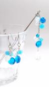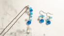 鮮やかな色のガラス玉とカットガラスを使ったかんざしと、お揃いで使えるピアスです。