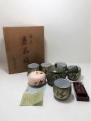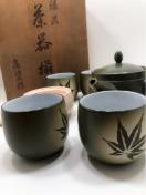 ★ 共箱付常滑焼 緑泥 練上手 高資作 茶器揃セットです。