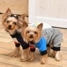 ・ペット服→ROPE PICNICロペピクニック フレア袖ボーダーニット、LOGOSロゴス ロンパース、フード付きチェックパーカー、セーラー服、クマ総柄、テディベアポーチデザイン