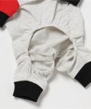 配色切り替えのラグラン袖と手描き風イラストのプリントが可愛いロンパース