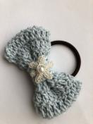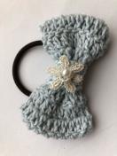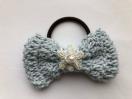 ラメ入りコットン糸でリボンを編んでヘアゴムを作りました。