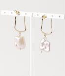 ゆらゆら揺れる淡水風パールに変形フレームがこなれ感を演出してくれるピアスです