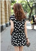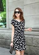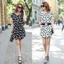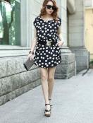 シフォン柄ワンピース/ベルト付黒★M v-fd4070-c8511